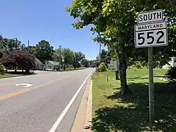 MD 552 was paved starting from MD 18 toward Dominion in two sections that opened in 1933 and 1935, respectively.[3][4][5] MD 552 was extended north to connect with the ramps for exit 39B of US 50/US 301 when that highway was upgraded to a freeway around 1991.[6][7]