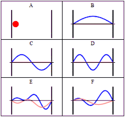 The third class are matter waves which have a wavevector, a wavelength and vary with time, but have a zero group velocity or probability flux. The simplest of these, similar to the notation above would be These occur as part of the particle in a box, and other cases such as in a ring. This can, and arguably should be, extended to many other cases. For instance, in early work de Broglie used the concept that an electron matter wave must be continuous in a ring to connect to the Bohr–Sommerfeld condition in the early approaches to quantum mechanics.[63] In that sense atomic orbitals around atoms, and also molecular orbitals are electron matter waves.[64][65][66]