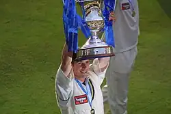 Matthew Wood lifting the C&G Cup for Yorkshire