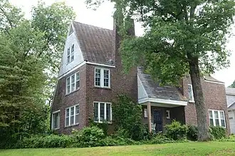 The Matthews-Dillon House is a historic house at 701 Skyline Drive in North Little Rock, Arkansas. It is a 2+1⁄2-story brick building, with a steeply pitched gable roof in a saltbox profile. The roof is continued over a small front porch, with flush-set chimneys to its left and a gabled projection to its right. The house was built in 1928 by the Justin Matthews Company, to a design by company architect Frank Carmean. The house is locally unusual for its evocation of colonial New England architectural style, executed as a brick variant of medieval English architecture.[2]