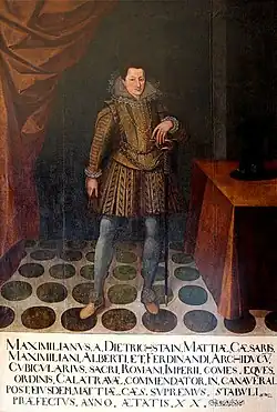 Maximilian, Prince of Dietrichstein (27 June 1596 – 6 November 1655), was a German prince member of the House of Dietrichstein, Imperial Count (Reichsgraf) of Dietrichstein and owner of the Lordship of Nikolsburg in Moravia; since 1629 2nd Prince (Fürst) of Dietrichstein zu Nikolsburg, Baron (Freiherr) of Hollenburg, Finkenstein and Thalberg, was a diplomat and minister in the service of the House of Habsburg. He was a Kämmerer, Lord Chamberlain (Obersthofmeister), Conference Minister (Konferenzminister) and Privy Councillor of Emperors Ferdinand II and Ferdinand III, Knight of the Order of the Golden Fleece since and ruler over Nikolsburg (now Mikulov), Polná, Kanitz (now Dolní Kounice), Leipnik (now Lipník nad Bečvou), Weisskirch and Saar (now Žďár nad Sázavou).