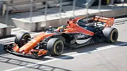 The McLaren MCL32 (originally known as the McLaren MP4-32)[4] is a Formula One racing car designed and constructed by McLaren to compete in the 2017 FIA Formula One World Championship.[5] The car was driven by two-time World Drivers' Champion Fernando Alonso, who stayed with the team for a third season; and Stoffel Vandoorne,[6] who joined the team after Jenson Button retired from full-time competition at the end of the 2016 season.[7][8]