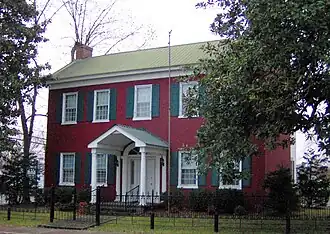 Falcon Rest, built in 1896, once served as the home of entrepreneur Clay Faulkner and his family. A large 10,000 square feet (900 m2), at the time of its completion it featured electric lights, indoor plumbing and central heat. PBS described the home as "Tennessee's Biltmore" due to its innovations and grandeur. In the 1940s the home was made into a hospital and nursing home and was eventually renamed Faulkner Springs Hospital. In 1989 George McGlothin bought the house and renovated it to its former 1896 appearance.[19] In 1992 the house was placed on the National Register of Historic Places.[20] The renovations earned the house the National Trust for Historic Preservation's Great American Home Award in 1997. The house is open to the public for tours, shopping, dining, and special events. It also claims to be the home to a "friendly ghost".[19] The Black House is the oldest remaining residence in the city. Built in 1825 by Jesse Coffee, it was one of the first in the area to have a brick exterior. Its current name stems from former occupant Dr. Thomas Black and his family. Dr. Black was a Confederate surgeon during the Civil War and purchased the home following the war.[21] Dr. Black practiced medicine at the house. In the 1980s it was deeded to his relative, Jean Leonard, who worked with the Eagle Club to begin restoration on the house. The house serves as a museum and provides tours to the public.[22] In 1983 the house was added to the National Register of Historic Places.[23]