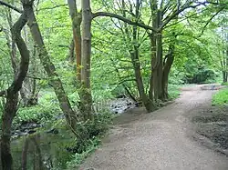 The Meanwood Valley Trail is a waymarked footpath and the title of an annual (March/April) footrace that takes place on parts of the trail in Leeds, West Yorkshire, England. It runs for a distance of 7 miles (11 km) from the statue of (former Leeds mayor) Henry Rowland Marsden, 1878, on Woodhouse Moor, close to the University of Leeds, through Headingley, Meanwood and Adel to Breary Marsh, Golden Acre Park, where it meets the Leeds Country Way. For most of its route (to King Lane) it is the official Leeds link to the Dales Way. Along the way are signs giving information about the local wildlife. The first stages of the White Rose Way follow part of the trail also before continuing to Scarborough.