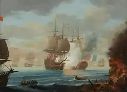 Ottoman power based in Anatolia continued to grow, and in 1453 extinguished the Byzantine Empire with the Conquest of Constantinople.[33] Hayreddin Barbarossa, the Ottoman captain is a symbol of this domination with the victory of the Battle of Preveza (1538), opening up Tripoli and the eastern Mediterranean to Ottoman rule.[34] As the naval prowess of the European powers increased, they confronted Ottoman expansion in the region when the Battle of Lepanto (1571) damaging the power of the Ottoman Navy. This was the last naval battle to be fought primarily between galleys.[35]