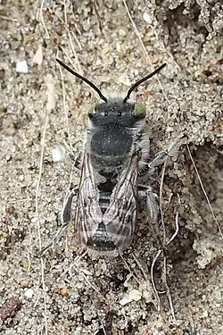 Megachile leachella, also known as the silvery leafcutter bee, is a species of solitary bee in the family Megachilidae.[1] This species is widely distributed in the Western Palaearctic region from Southern Fennoscandia to North Africa and the Middle East, however the precise boundaries of the species range is not fully understood.[2] The species was described by John Curtis in 1828.[1]