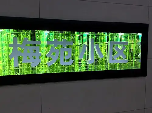 Meiyuanxiaoqu Station (Chinese: 梅苑小区站) is a station of Line 4 of Wuhan Metro. It entered revenue service on December 28, 2013. It is located in Wuchang District.[1][2]