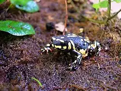 Melanophryniscus stelzneri, commonly known as the redbelly toad,[1][2][3] bumble bee toad[4][a] or yellow and black walking toad,[5] is a species of toad in the family Bufonidae which is endemic to Argentina.[1][2] It is present in the pet trade.[1]