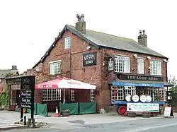 Mere Brow was primarily an agricultural village due to the excellent soil, although there was fishing activity for many years. Production of flowers and vegetables is common on the farms around the village. The village has a public house, the 'Legh Arms', named from the owners of Bank Hall, a restaurant, cafe, smithy, a village hall, general store and animal feed merchants, "Ascroft's" and livery yard.[2] At the leisure lakes there is a golf driving range and nine-hole course, caravan park, equestrian centre, paintballing, watersport and angling centre.[3] The village had two petrol garages on the A565 road which closed, one re-opened in 2002 as a carwash. The post office closed in 2008 leaving the nearest alternative in Banks. However, this one also shut recently which means that the closest option is currently situated within a Spar convenience store in Tarleton (ironically slightly nearer). The bank closed in the mid 1990s and is now a residential dwelling.