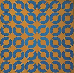 Williams' work of the 1960s and 1970s relates to that of European artists such as Bridget Riley and Victor Vasarely.[11] Op art came to prominence in the United States with the Museum of Modern Art’s exhibition The Responsive Eye in 1965, and had a large public following.[12] In New Zealand, a small number of artists worked in an Op style, notably Gordon Walters and . Ray Thorburn Williams and Walters travelled to Melbourne, Australia, together in 1975, breaking their return journey to visit Sydney to see an exhibition of recent paintings by Bridget Riley at the Coventry Gallery.[13]
