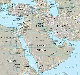 - ^ Middle East Archived 15 April 2016 at the Wayback Machine What Is The Middle East And What Countries Are Part of It? worldatlas.com. Retrieved 16 April 2016.