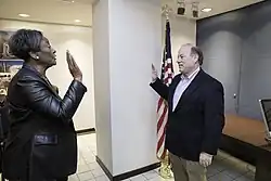 As a Democrat, Duggan has served as an appointed and an elected official in Wayne County, Michigan, beginning in 1986 as Wayne County's assistant corporation counsel. He was deputy County Executive from 1987 to 2001 under Edward H. McNamara, and was elected prosecutor in 2000.[11] He also served as the interim general manager of SMART, the region's public transit authority, from 1992 to 1996.[12][13]