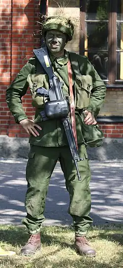 | m/1958 | ![]() | Combat uniform | Unknown | 1958-???? | Produced in parallel with m/1959 uniform. Intended for winter use.[2] | |