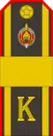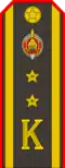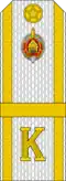 | Ґенэрал-палкоўнік G̀jeneral-palkoŭnik | Ґенэрал-лейтэнант G̀jeneral-liejtenant | Ґенэрал-маёр G̀jeneral-major | Палкоўнік Palkoŭnik | Падпалкоўнік Padpalkoŭnik | Маёр Major | Капітан Kapitan | Старшы лейтэнант Staršy liejtenant | Лейтэнант Liejtenant | Малодшы лейтэнант Malodšy liejtenant | |||||||||||||||