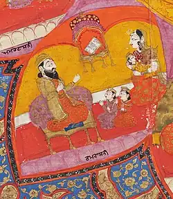 Born in 1558 in Goindwal as the eldest son of Guru Ram Das, Prithi Chand felt that due to his position as such, he was the natural choice as his father's successor, though the Guru would select his youngest son, Guru Arjan (b. 1563), to succeed him. Prithi Chand refused to accept the choice.[10] While eventually accepting the choice and acknowledging Guru Arjan's authority, supporters of Guru Arjan would consider this the period when Prithi Chand would start to feud with him.[8] In the years following his father's death, Prithi Chand would grow bitterly opposed to Guru Arjan, for instance asserting that Guru Arjan had usurped his father's property; to counteract this, Guru Arjan would transfer his property to him, opting instead to live on his followers' offerings.[11] In a ballad verse about the offspring of the Sikh gurus, for example, the influential Sikh figure Bhai Gurdas would comment, "Prithi Chand became a mīṇā (charlatan)."[8] According to some commentaries, he would also taunt Guru Arjan about his wife's inability to produce an heir; when Guru Hargobind was born in 1595, an unsuccessful poisoning attempt would take place on the child.[5][8][12]
