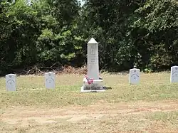 In 1864, the bodies of twenty-one Confederate soldiers who died of wounds suffered at the Battle of Mansfield were buried in unmarked graves in the cemetery. In 1936, an obelisk was placed at the site of the graves.[5] Individual markers were placed near the obelisk in 2008 to honor the soldiers.[6]