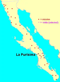 Mission La Purísima, was founded west of Loreto in Baja California Sur, by the Jesuit missionary Nicolás Tamaral in 1720 and financed by the Marqués de Villapuente de la Peña and his wife the Marquesa de las Torres de Rada.