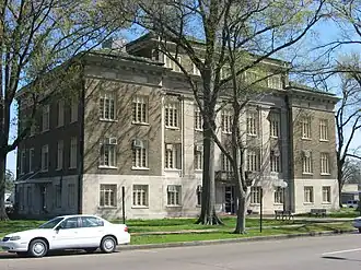 The Mississippi County Courthouse for the Chickasawba District is located at 200 West Walnut Street in Blytheville, Arkansas, one of Mississippi County's two seats (the other is Osceola). It is a 3+12-story brick-and-cut-sandstone structure, designed by the Pine Bluff firm of Selligman and Ellesvard, and built in 1919. It is a fine local example of Colonial Revival styling, with a recessed center entrance and a projecting modillioned cornice. The interior has had few alterations since its construction.[2]