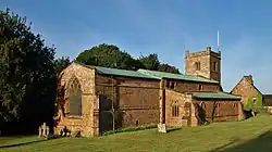 The earliest parts of the Church of England parish church of All Saints date from the 14th century, but the font is 13th century so there may have been an earlier church building on the site.[3][4] All Saints' has a north aisle which is linked to the nave by an arcade of four bays. The tower was built in the 16th century. There was a chapel on the north side of the chancel, but it was demolished in 1786. A blocked arch and doorway survive in the north wall of the chancel and a piscina can be seen from the outside.[5]