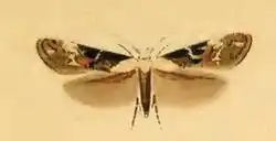 This article incorporates text from this source, which is in the public domain. Keys and description - ^ Koster, J.C. & Sinev, S.Yu., 2003. Momphidae, Batrachedridae, Stathmopodidae, Agonoxe nidae, Cosmopterigidae, Chrysopeleiidae. - In P. Huemer, 0. Karsholt and L. Lyneborg (eds): Microlepidoptera of Europe 5: 1-387. ISBN 87-88757-66-8 ISSN 1395-9506
