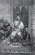 | Norodom Prohmbarirak នរោត្ដម ព្រហ្មបរិរក្ស | ![]() | Ang Voddey អង្គវតី | 19 October 1860 – 11 August 1863 | Son |