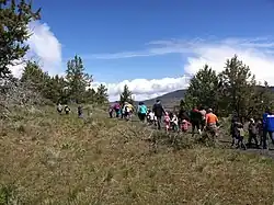Moore Park has 458 acres (185 ha; 0.716 sq mi) surrounded by grassy parkland sloping down to the lake from the roads on the south and east, and also habitats that range from juniper and sage steppe to dense pine forests.[3] The overwhelming majority of the forests in Moore Park are Juniper woodland, primarily western juniper. Juniper has adapted to survive even under extreme dry conditions, which has led to its dominating sites by out-competing other vegetation. Fire suppression in the Klamath Basin has permitted western juniper species to expand rapidly into adjacent plant communities. To allow for plant diversity in Moore Park, juniper woodlands are thinned by land managers. Sagebrush, Klamath plum, and bitterbrush predominate in the sage steppe.