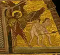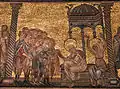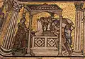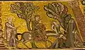 ![]() | Noah and the Animals Enter the Ark | Double scene, showing a certain modernity in the animals. Ponticelli attributed it to a 1483–1499 intervention by Alesso Baldovinetti, inspired by Paolo Uccello's frescoes Scenes from the Life of Noah in the Chiostro Verde of Santa Maria Novella. Roberto Longhi instead argued the mosaic was earlier than the fresco, with the latter drawing on the former. Soulier noted Egyptian or Syriac influence. |