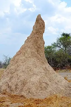 Vegetation on termite mounds usually differs highly from vegetation in the surrounding.[9][10] In African savannas, Macrotermes mounds form 'islands' with high tree densities. This is usually attributed to the fact that the mound soils are generally more fertile than other soil due to the digging of termites and their decomposition of plant material. On top of that, mound soils have been found to contain more water than their surroundings, a clear advantage for plant growth in savannas.[11] The high tree densities on termite mounds attract high densities of browsing herbivores, due to the high nutrient contents in foliage from trees growing on mounds,[12][13] or perhaps due to the high quantities of food and shelter on mounds.[10]