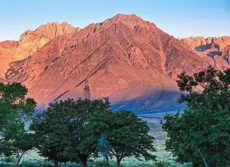 This mountain's name was officially adopted in 1937 by the U.S. Board on Geographic Names to honor the legendary Paiute chief, Tinemaha.[3] The peak was known by this name to the early prospectors and cattlemen of Owens Valley.[5] The first ascent of the summit was made July 1, 1937, by Chester Versteeg, a prominent Sierra Club member.[6] Chester Versteeg submitted the name to the board for consideration.[3]