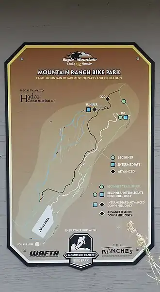 Mountain Ranch Bike Park, located in Eagle Mountain, Utah, United States, is a city park designed for mountain bikers of all skill levels. The park features dirt jumps, a pump track, two slope style trails, a skills area and a single track trail with wood features.