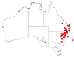 - ^ a b c d e f Barlow, B.A. in George, A.S. (ed.) (1984), Loranthaceae. Flora of Australia 22: 90, Fig. 23B, Map 102