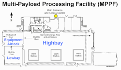The interior of the primary MPPF building is divided into a low bay, high bay, and equipment airlock.