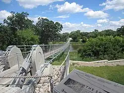 From the mid-century to the late 1800s, only the Assiniboine roamed these areas. The first permanent settlers to the area arrived in 1880 when Captain Gilbert Wood, his wife, and two children came to the area.[7] They travelled to Winnipeg by way of Chicago, from there they took a buckboard wagon west, pulled by oxen while a steamship carried their goods up the Assiniboine River.[7] Captain Wood had heard of a man named Lang who told him the land at Plum Creek and the Souris River was a beautiful place to settle. Wood, curious by this notion, hired a guide by the name of Bangs and they set out to see the area for themselves.[7] This resulted in a 3-4 day round trip from their camp at Millford which is on the south bank of the Assiniboine at Treesbank. When they returned his wife asked him what he thought of the area, to which he replied that it was a beautiful district, the best he had seen in all their journeys.[7] To this Mrs. Wood replied "Then take me to Plum Creek."[7]