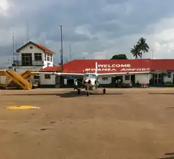 Mwanza International Airport (IATA: MWZ, ICAO: HTMW) is a major regional airport in northern Tanzania serving the city of Mwanza. It is located near the southern shores of Lake Victoria approximately 10 kilometres (6.2 mi) from the city. It serves as the main hub for Auric Air and a secondary hub for Precision Air.