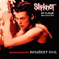 In January 2002, it was announced that a reworked version of "My Plague" dubbed the "New Abuse mix" would be featured on the Resident Evil soundtrack and released as a single in February.[9] The track was remixed by Terry Date and features "cleaner vocals and some minor arrangement shifts", according to Blabbermouth.net.[10] Speaking about the song's "New Abuse mix", Slipknot bassist Paul Gray explained that "On the album version there were some kind of weird vocal effects on some of the parts, and we took them out and just had Corey [Taylor] sing", adding that a section of the song had to be removed in order to make it suitable for radio airplay.[10] The single release was later delayed to July 8, with live recordings of "The Heretic Anthem" and "(sic)" from a show in Stockholm, Sweden on January 22 featured as B-sides.[11]