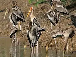 Mycteria is a genus of large subtropical and tropical storks (family Ciconiidae) with representatives in the Americas, east Africa, and southern and southeastern Asia. Two species have "ibis" in their scientific or old common names, but they are not related to these birds, and merely resemble some bald-headed ibises.