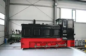Two 1,000 mm (3 ft 3+3⁄8 in), metre-gauge, examples of this type, built in 1964, initially in service in Gotha at an industrial firm, went to the Spreewald Railway in 1970. There they were given numbers 100 905 and 906; from 1973: 199 005 and 006. Later they went to the Harz Narrow Gauge Railways. They were retired in 1991 but were given, on paper at least, numbers 399 112 and 113. No. 199 005 is now with the Harz Narrow Gauge Railways Society.