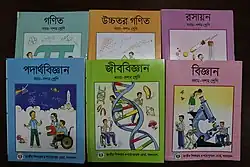 All public schools and many private schools in Bangladesh follow the curriculum of NCTB. Starting in 2010, every year free books are distributed to students between Grade-1 to Grade-10 to eliminate illiteracy.[6] These books comprise most of the curricula of the majority of Bangladeshi schools. There are two versions of the curriculum. One is the Bengali language version and the other one is English language version.