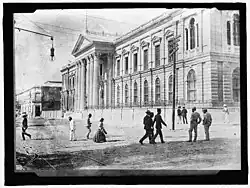 The current National Palace of El Salvador, located in San Salvador, the capital city of the country of El Salvador, replaced the old National Palace built in 1866–1870, which was destroyed by fire on December 19, 1889. The construction, done between 1905 and 1911, was the work of engineer José Emilio Alcaine, under the direction of the foreman Pascasio González Erazo. To finish the project, legislation was passed that collected one colón for every quintal of coffee exported. The materials used were imported from several European countries including Germany, Italy and Belgium. The Palace's facilities were occupied by government offices until 1974.