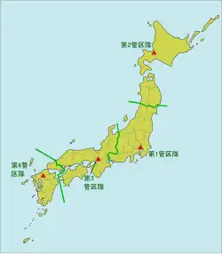 The National Police Reserve (警察予備隊, Keisatsu Yobitai), or NPR, was a lightly armed national police force established in August 1950 during the Allied occupation of Japan.[2] In October 1952, it was expanded to 110,000 men and renamed as the National Safety Force (保安隊, Hoantai). On July 1, 1954, it was reorganized as the Japan Ground Self-Defense Force (JGSDF).