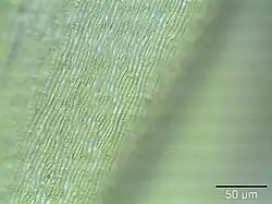 The species is described as having a pleurocarpous growth habit that forms soft carpets or turfs. It has regularly pinnate shoots up to 15 cm long. Branching may become irregular when growing on disturbed sites, such as mowed lawns. Branches are usually between 1 and 3 cm in length.[1] The shoots of have a swollen appearance which is especially pronounced when moist.[2]