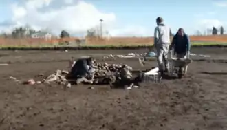 The site was discovered in early 2024 during excavations for an electricity station linked to a high-speed rail project. While the burial mounds had been long visible and recognised as ancient features for centuries, the recent excavations revealed numerous tombs surrounding them that were previously undiscovered.[8] In April 2024 the local cultural heritage authority announced the discovery to the press. Amorosi's mayor, Carmine Cacchillo, described the discovery as "of decisive importance for the history of our culture".[1] The excavation, supervised by the Soprintendenza (Superintendency) Archeologica Belle Arti e Paesaggio (SABAP), of Caserta and Benevento,[9] was carried out by Terna's Archaeology Unit and conducted on-site by the archaeological company SAP.[10] The scientific aspect of the discovery is governed by the archaeologist Andrea Martelli.[11] Specialists, including restorers, anthropologists and paleobotanists, contributed to gathering data aimed at reconstructing as much as possible about the ancient population. Various entities made contributions to the project. The Municipality of Amorosi provided support, while law enforcement agencies like Carabinieri protected the archaeological site.[10] The Terna's group involvement in the preservation and study of the Necropolis of Amorosi showcases a collaboration between industry and archaeology. The uncovered tombs and bodies are being analysed in a laboratory provided by the Municipality of Amorosi established at the excavation site, according to a statement from the authorities.[10]