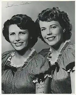 As teenagers living in Southern California, they worked regularly and were cast members on Burt "Foreman" Phillips' musical variety show in Compton, California. By the 1950s, they were appearing as The Southern Belles, appearing on Town Hall Party with Merle Travis and other early TV music stars. Travis introduced Nelda to the AMI president Irv Cross, who made her a staff writer, one of a very few women then on the writing staffs of music publishers. She variously wrote as Ned Fairchild and Sunny Bingo.