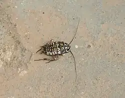 Neostylopyga rhombifolia, the harlequin roach, is a species of flightless cockroach in the family Blattidae.[1][2][3] It is a synanthropic species, often found in houses, and it is usually considered a pest. It has been introduced globally to tropical and subtropical regions as a result of trade. Its original native range is unknown, but is believed to be somewhere in tropical Asia.