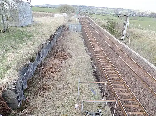 Railway workers' accommodation cottages were never built at the site probably as the facility was too small. Although the sidings have been lifted the site is still in use for access and the storage of materials. The electrified double track line of the Neilston branch still runs past the site. Two telecoms system masts and associated GSM-R equipment are located on the old loading dock and provide railway staff with voice and text communication.