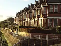 As with the neighbouring settlement of Rock Ferry to the north-west, a ferry service gave its name to the locality: the first recorded mention of New Ferry was in 1774.[3] On 4 April 1865, a "South End" service was established between New Ferry and South Ferry Basin in the southern dock system of Liverpool, although this appears to have been relatively short-lived. From 1879, services to Liverpool Pier Head were usually augmented with Rock Ferry.[4] The ferry service was forced to close after a ship collided with New Ferry Pier in thick fog, in the early hours of 30 January 1922. Declining passenger numbers, improved local land-based public transport and a close proximity to the Rock Ferry service meant that it never reopened. The lease on the ferry rights officially expired on 22 September 1927, although no service had operated at New Ferry for over five years as a result of the collision.[5]