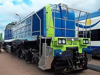 Newag 15D/16D is a cargo locomotive (type 15D - PKP ST48 series) or broad gauge (type 16D) diesel locomotive rebuilt by Newag in Nowy Sącz in Poland, which is a deeply modernised SM48 (Soviet TEM2) locomotive.[1]