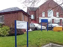 The council has two main administrative buildings, both inherited from its predecessor authorities. The Downshire Civic Centre comprises part of the Downshire Hospital complex at Downpatrick, which had been converted and extended to become the headquarters of Down District Council in 2012.[8] O'Hagan House on Monaghan Row in Newry was formerly the headquarters of Newry and Mourne District Council.[9] Full council meetings are generally held at Downshire Civic Centre, whilst some committee meetings are held at O'Hagan House.[10]