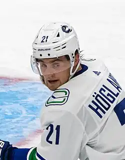 Höglander made his NHL debut and scored his first NHL goal on 13 January 2021, in the Canucks' season opener against the Edmonton Oilers.[11][12][13] On 18 May, Höglander was awarded the Pavel Bure Most Exciting Player Award by Canucks fans.[14]
