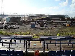 The roof of the Grandstand coming down